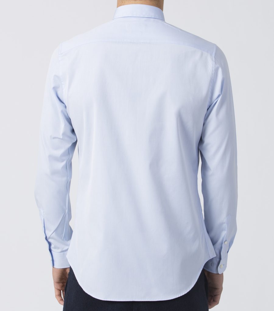 Chemise légèrement cintrée en popeline de coton, douce et légère. Col fin, aux pointes arrondies. Poche plaquée avec sérigraphie “Smile” en encre texturée.