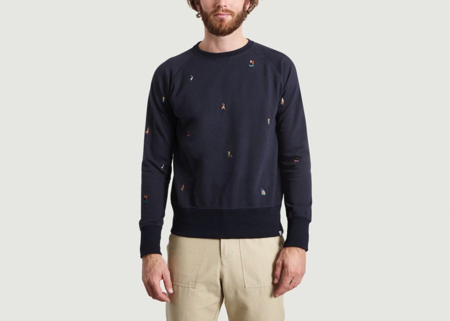 Pull Navy avec impression allover.