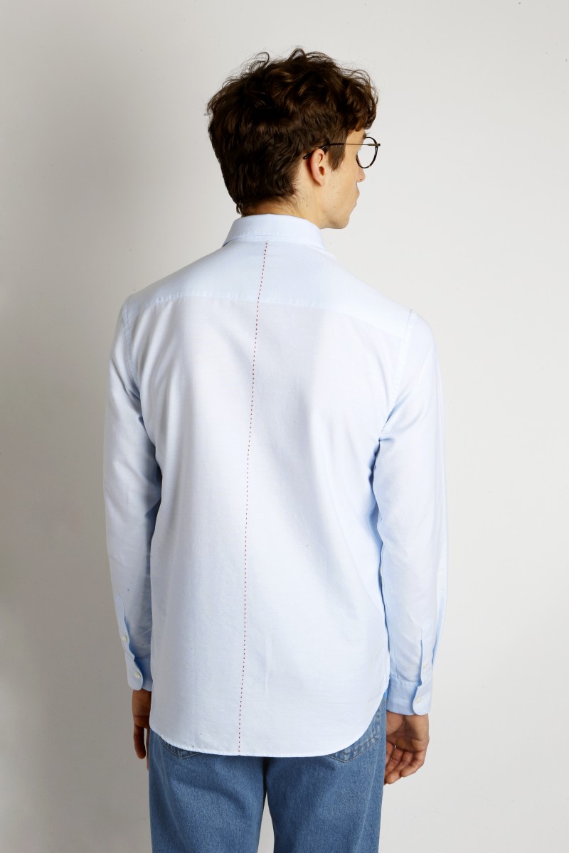On aime cette chemise pour ses petits détails : logo discret brodé sur le cœur, surpiqûre rouge dans le dos. On peut facilement la porter avec un denim pour une tenue décontractée chic.