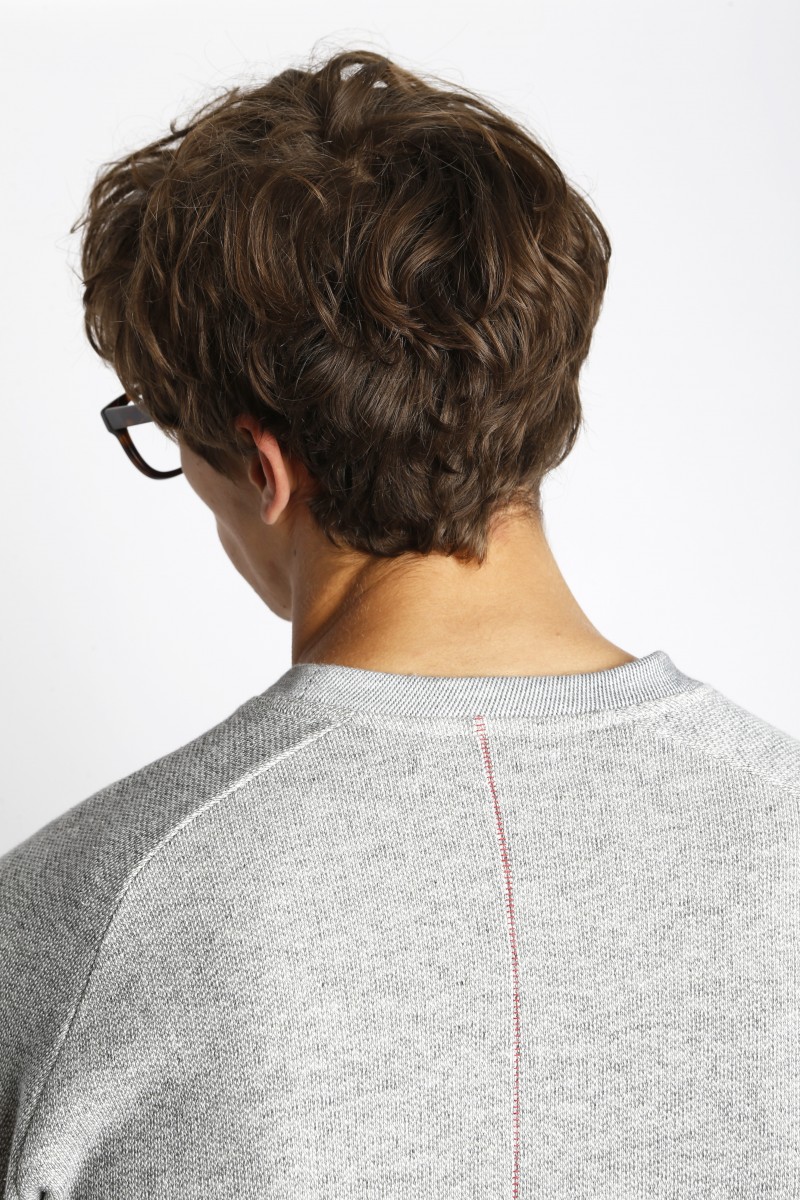 Sweat à manches raglan en molleton chiné. Finitions rib subtilement contrasté. Coupe classique. Colonne vertébrale piquée en rouge. Bords légèrement grattés pour un côté vintage.