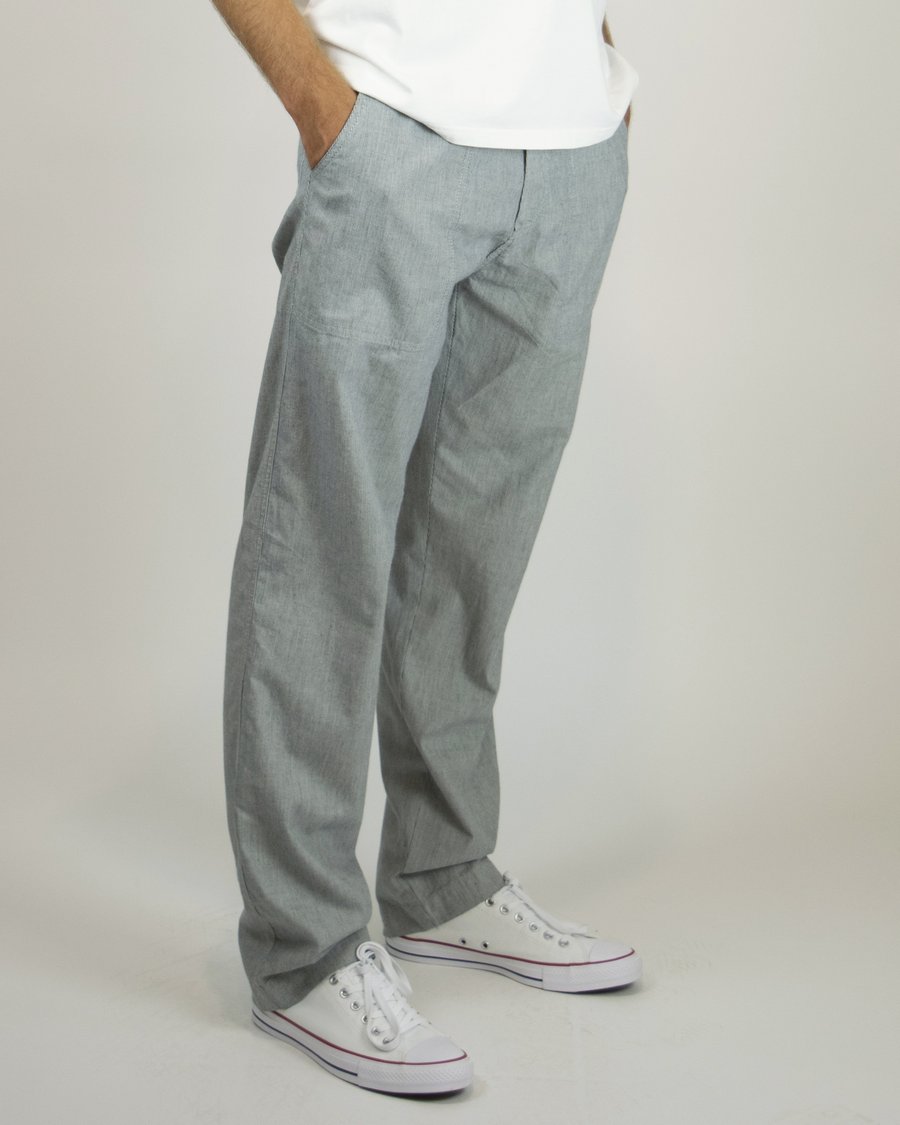 On aime ce pantalon pour sa légèreté. Sa longueur permet de le laisser tomber sur des sneakers ou de le remonter pour un style décontracté.